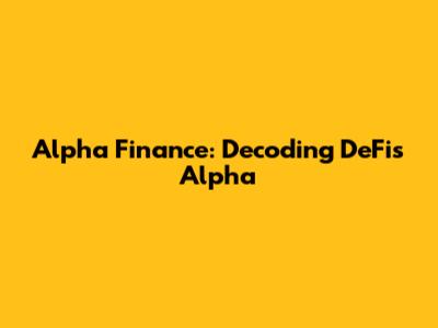 Alpha Finance: Decoding DeFi's Alpha