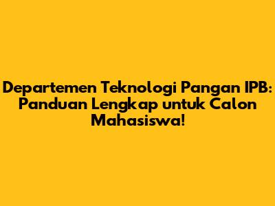 Departemen Teknologi Pangan IPB: Info Lengkap!