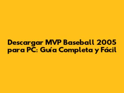 Descarga MVP Baseball 2005 Para PC: Guía Completa Y Fácil