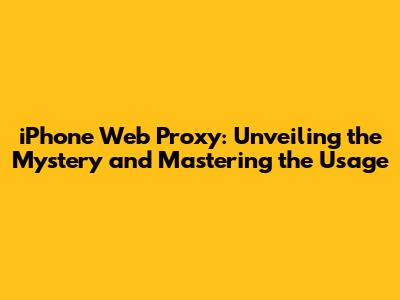 IPhone Web Proxy: What It Is & How It Works