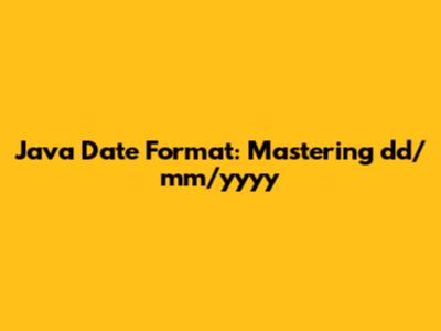 Java Date Format: Mastering Dd/mm/yyyy