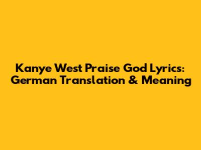 Kanye West Praise God Lyrics: German Translation & Meaning