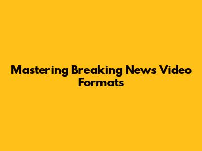 Mastering Breaking News Video Formats