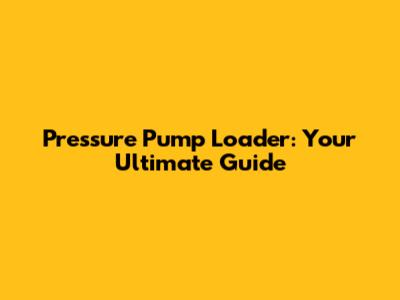 Pressure Pump Loader: Your Ultimate Guide